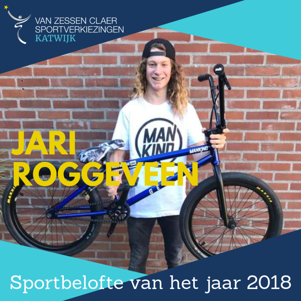 Jari Roggeveen, die dit jaar definitief zijn naam vestigde in de spectaculaire BMX-sport met de winst van 8 PRO-toernooien en de zevende plaats op het Nederlands kampioenschap, is de Sportbelofte van 2018. De jury toonde zich onder de indruk van deze prestaties en de enorme trainingsinspanning, die Jari levert om te groeien in zijn sport.